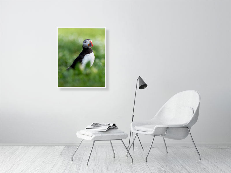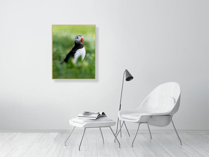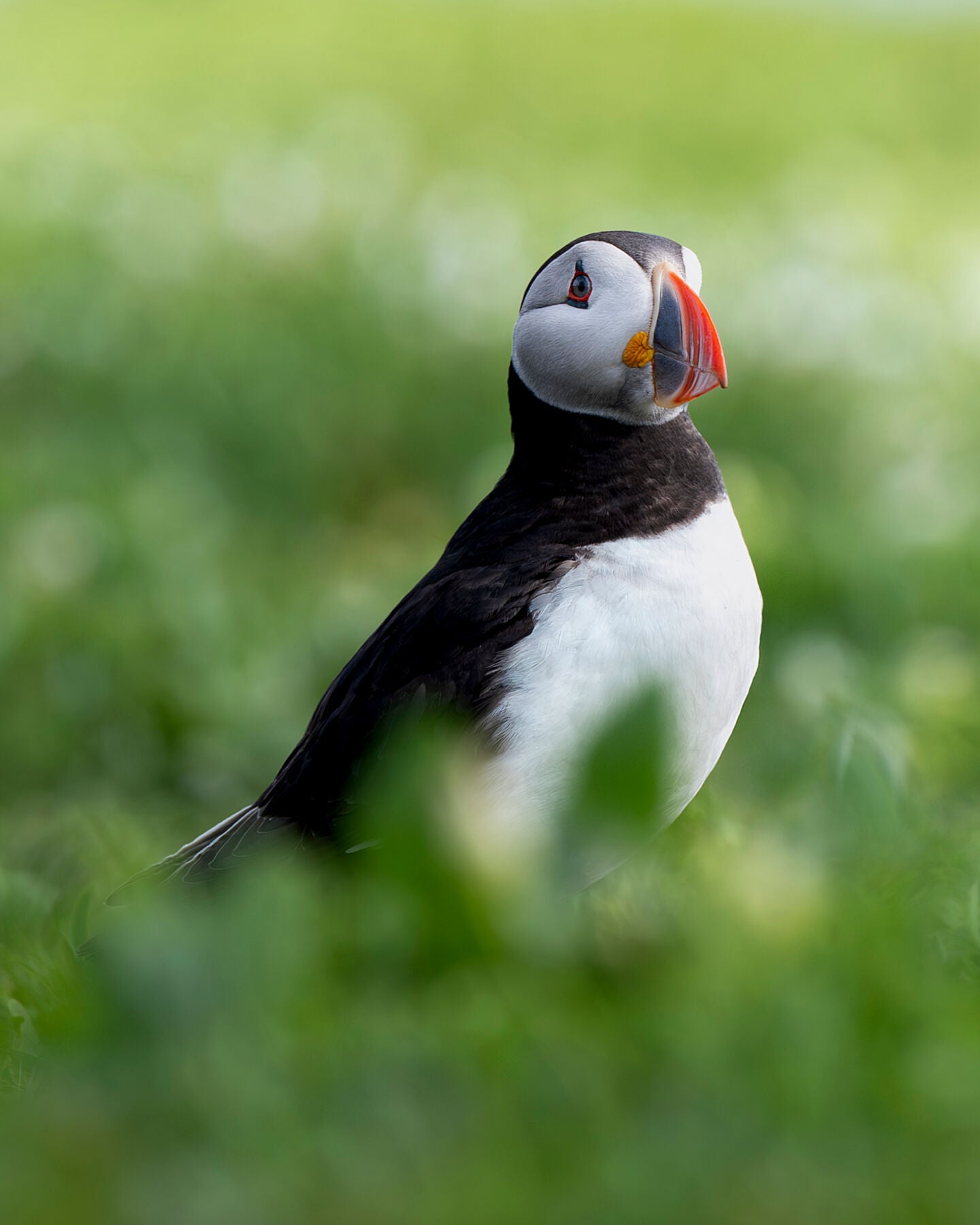 I spotted this puffin on the Farne Islands and couldn’t resist capturing him. He gave me that classic side-eye, curious but cautious, and I loved the personality in that glance. Shooting low to the ground, I used the shallow depth of field to let the grass form a soft bokeh, which really enhances the intimacy of the shot.