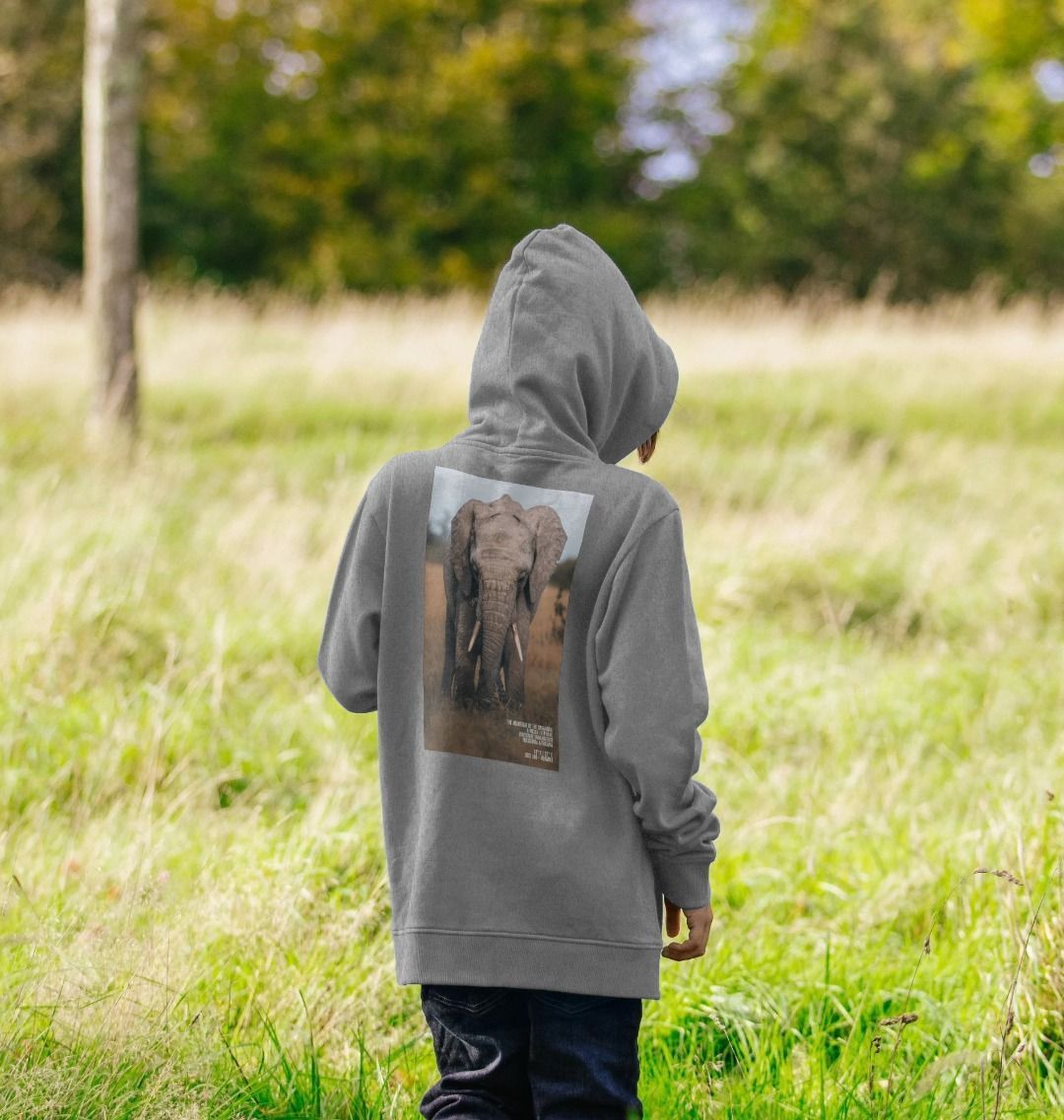 This isn't just a hoodie; it's a cozy way for your little one to connect with the wild! Featured on this Kid's Pullover Hoodie is an incredible, close-up photograph I took of a magnificent African elephant in the wild.