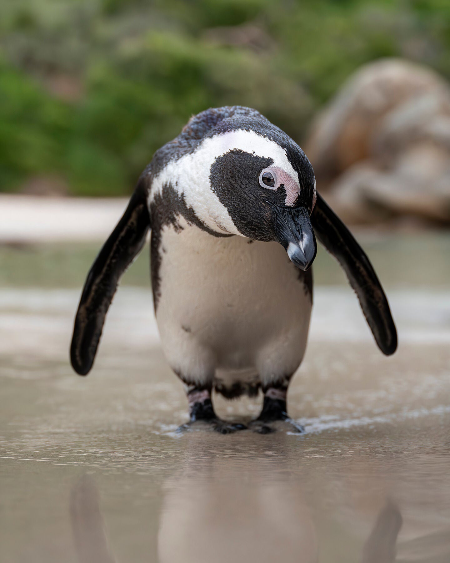 I captured this charming moment of an African Penguin as it strolled along the shoreline right towards me, its little feet gently skimming the water’s surface. There was something beautifully serene about the way it moved, with a quiet confidence that made me pause and smile.