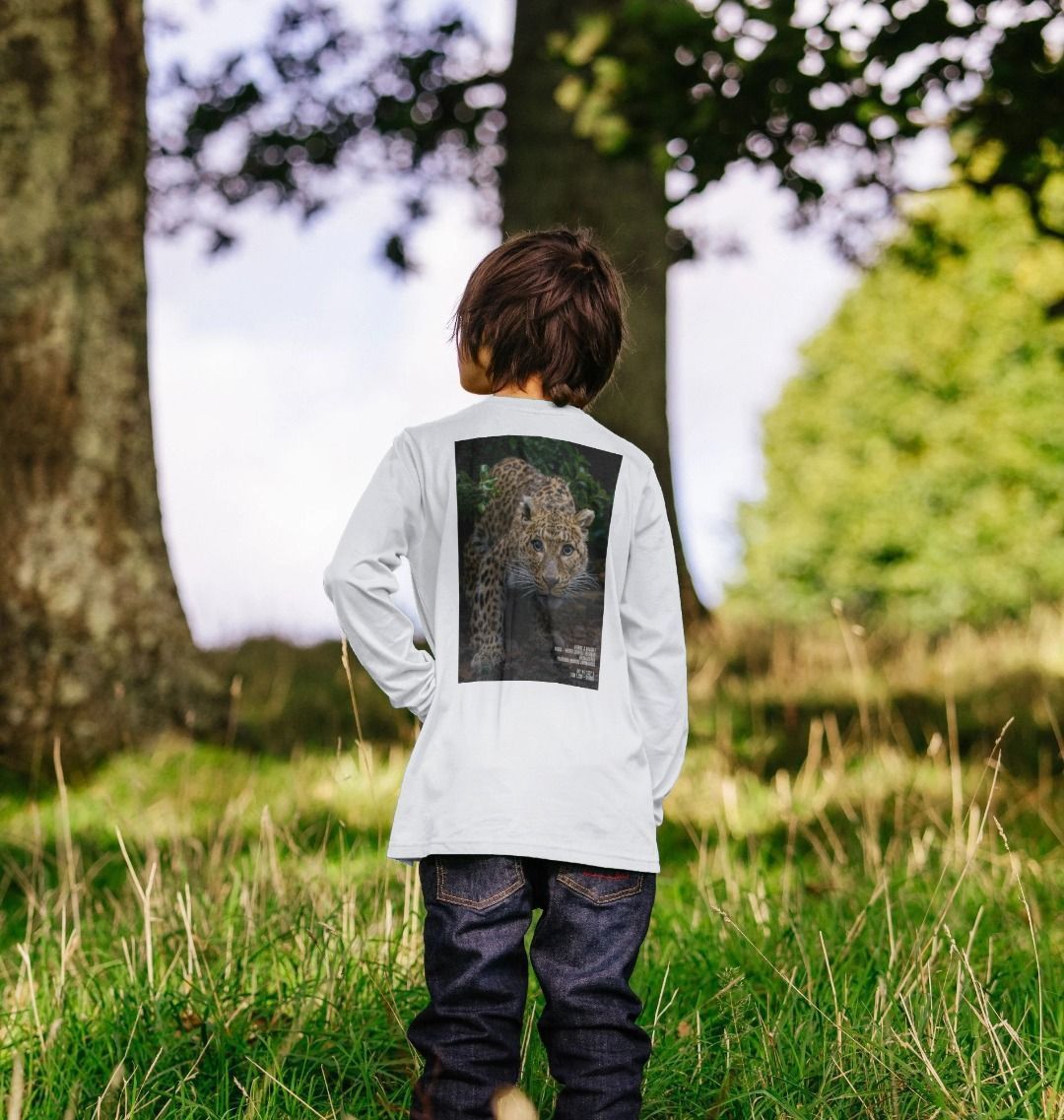 This isn't just a long sleeve tee; it's a cozy and cool way for your child to connect with the wild! This Kid's Long Sleeve Tee features a stunning photograph I captured of Atara, our magnificent Northern Chinese Leopard, at her sanctuary in Kent.