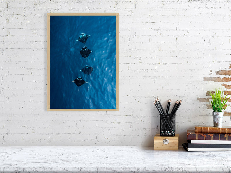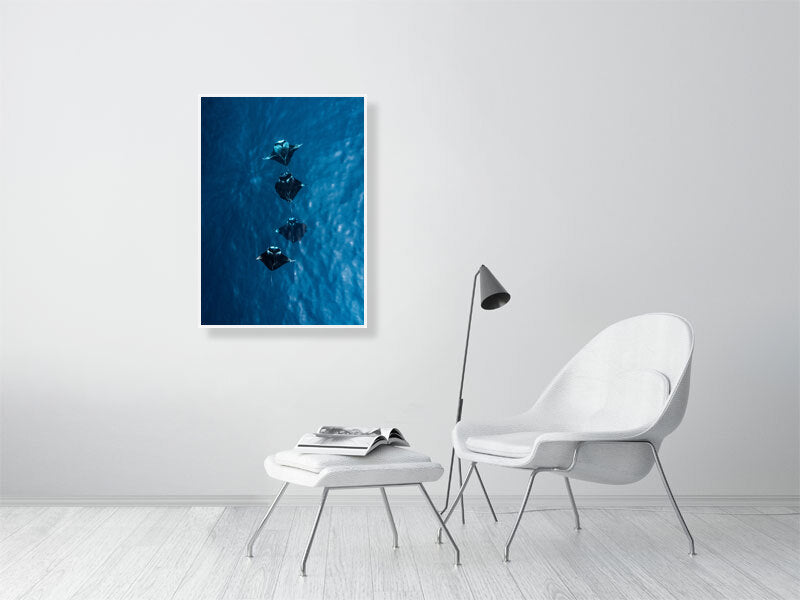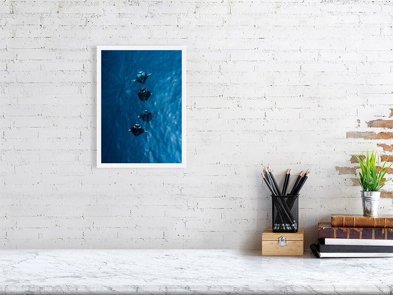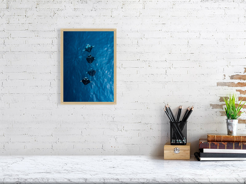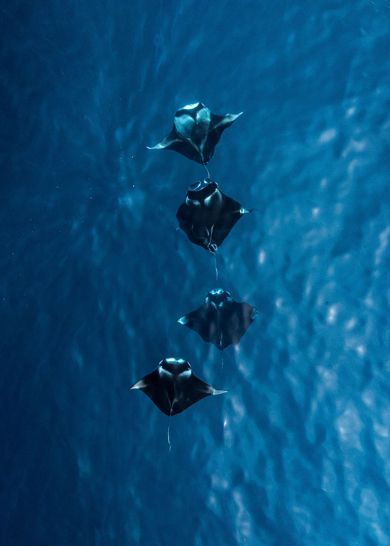 I captured this shot while flying my drone over the turquoise waters of the Maldives, where four manta rays moved effortlessly together below the surface. Seeing them from above offered a rare glimpse of their grace and symmetry, a calm, almost hypnotic rhythm as they glided through the light.
