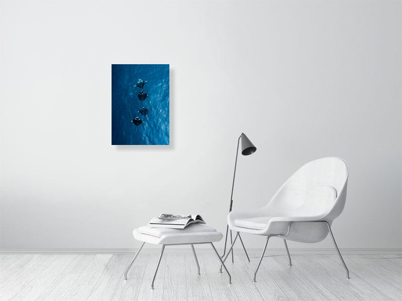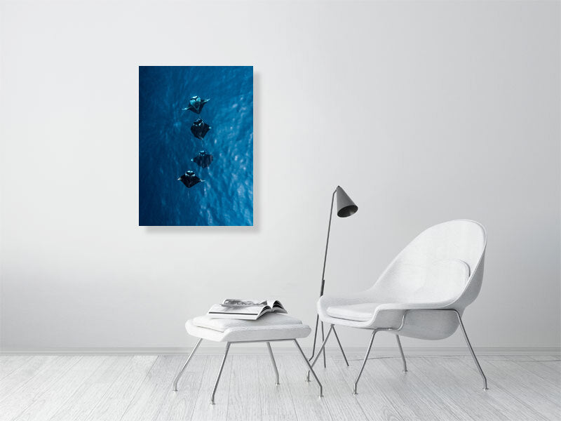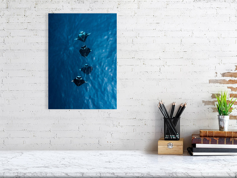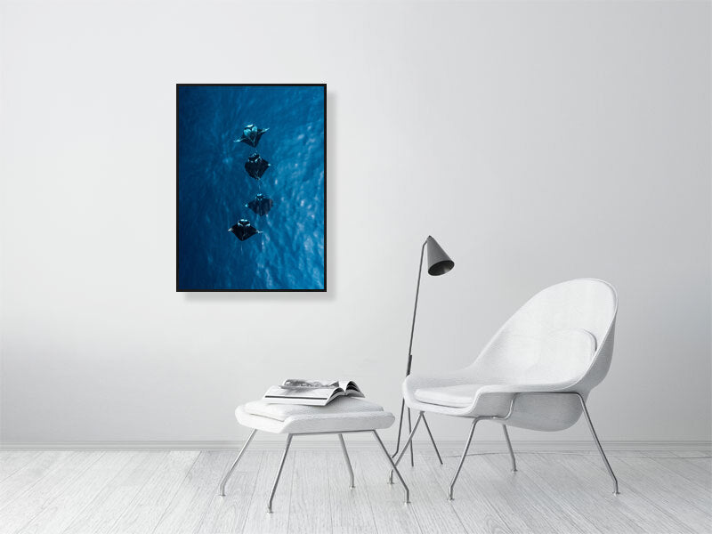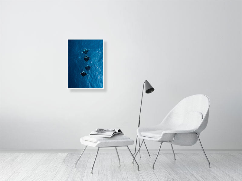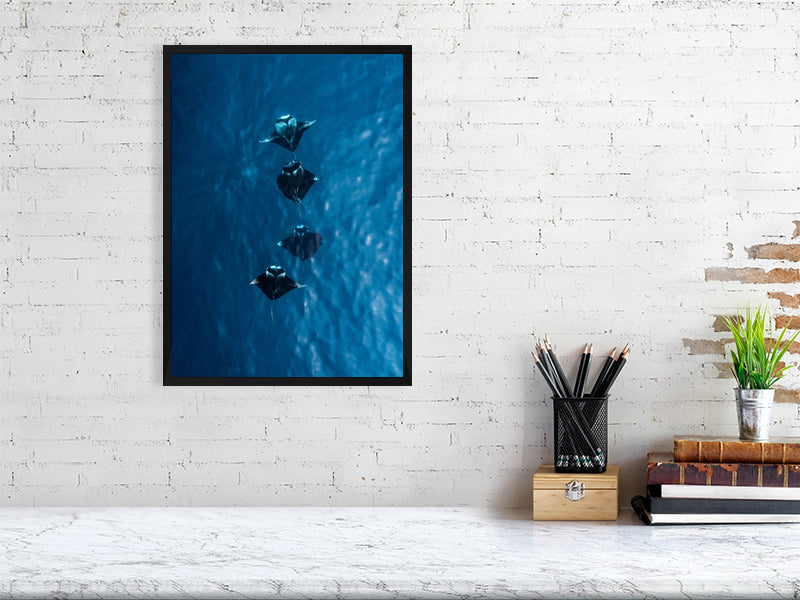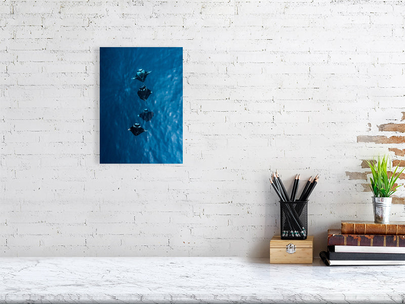 I captured this shot while flying my drone over the turquoise waters of the Maldives, where four manta rays moved effortlessly together below the surface. Seeing them from above offered a rare glimpse of their grace and symmetry, a calm, almost hypnotic rhythm as they glided through the light.