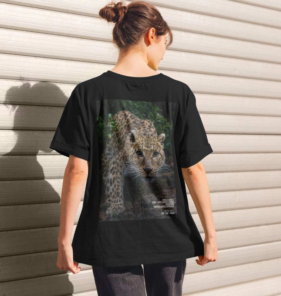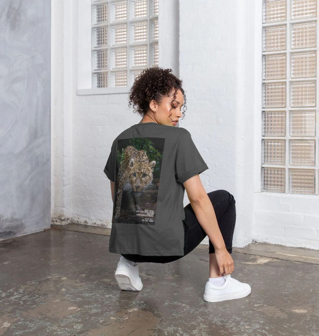 This isn't just a t-shirt; it's a wearable moment of connection. Featured on this Women's Relaxed Fit Tee is an intense, captivating photograph I took of Atara, our magnificent Northern Chinese Leopard, at the sanctuary in Kent.