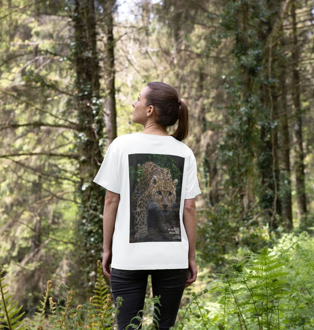 This isn't just a t-shirt; it's a wearable moment of connection. Featured on this Women's Relaxed Fit Tee is an intense, captivating photograph I took of Atara, our magnificent Northern Chinese Leopard, at the sanctuary in Kent.